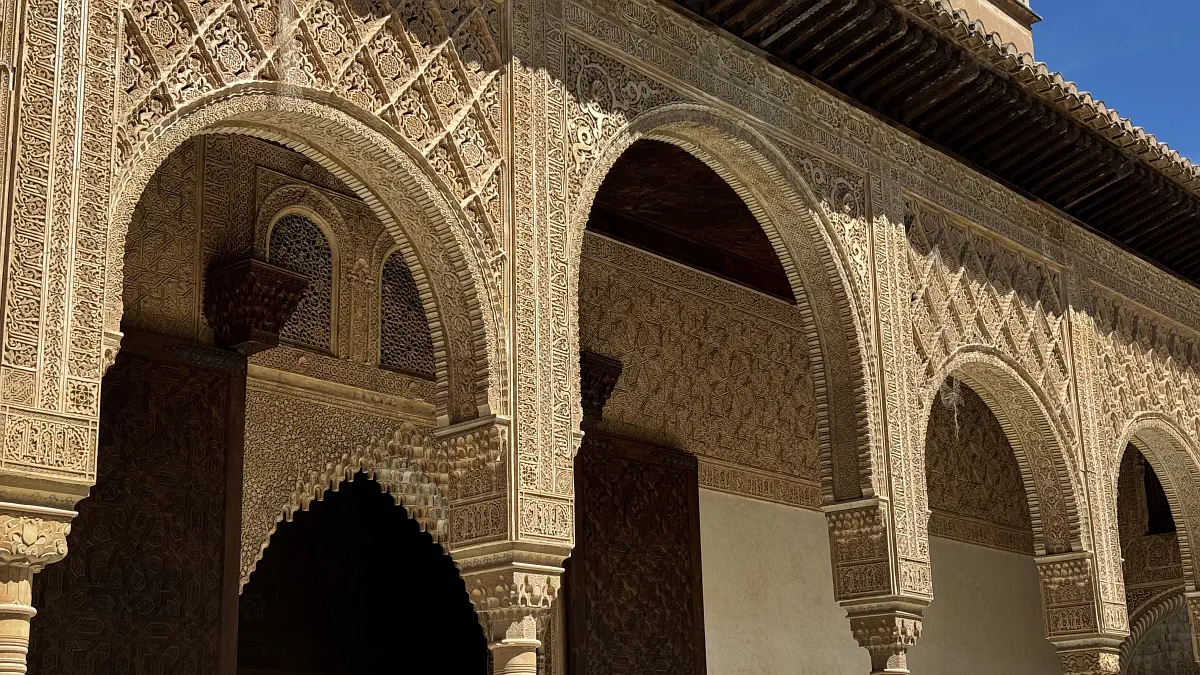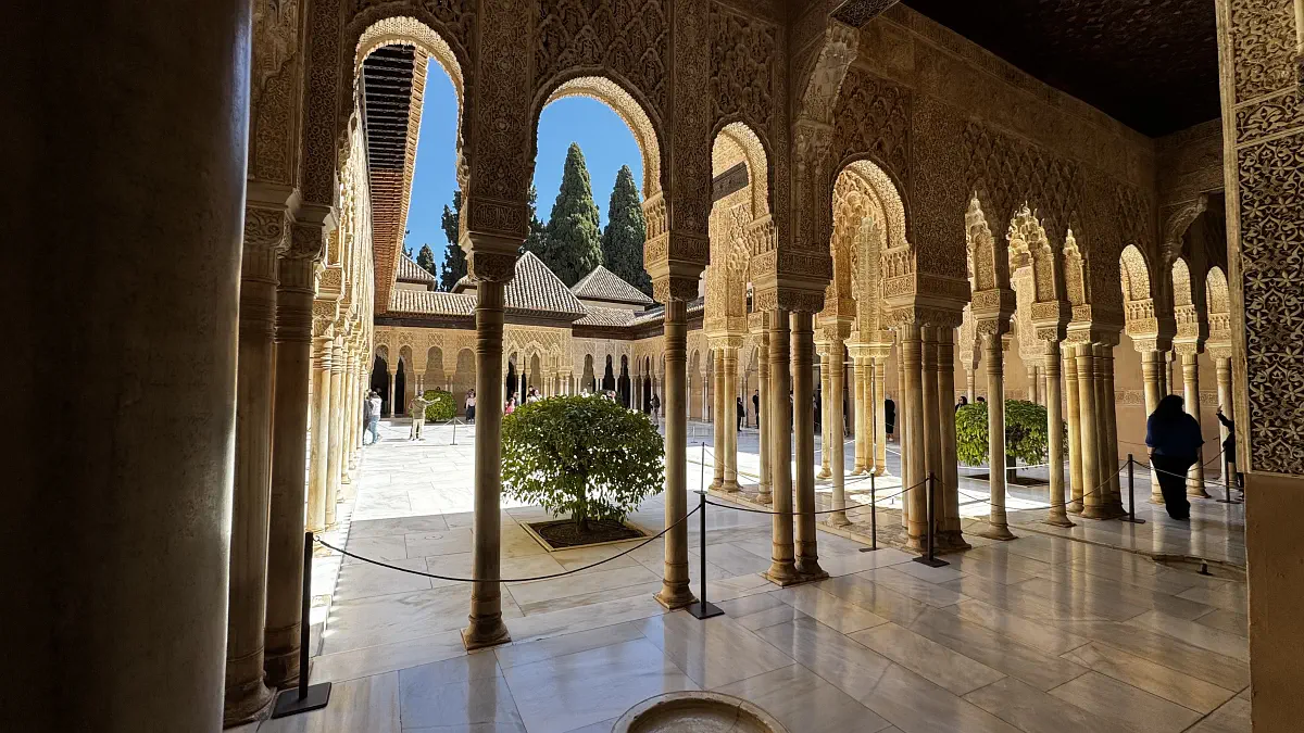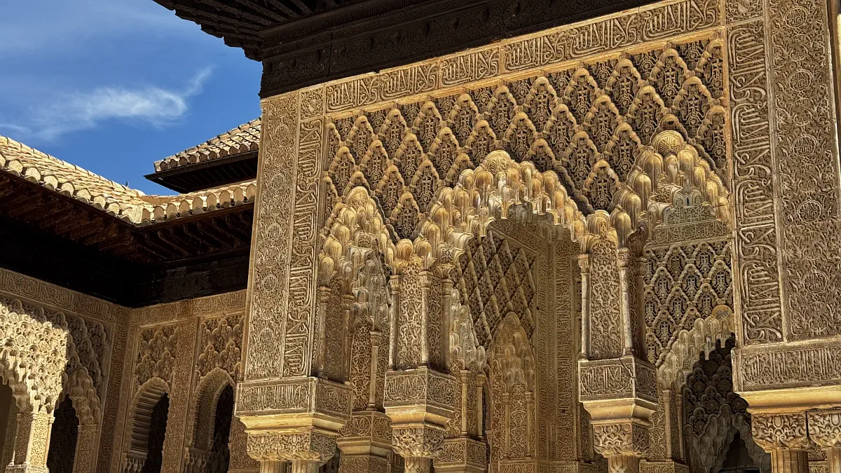 In Granada, the Nasrid Palace glowing in the sun was a real highlight, as was simply wandering through the historic centre. I noticed a lot more Arabic food places here than in the other cities. The palace has to be booked in advance — you cannot just turn up. In its current form, it was built over roughly 250 years by 10 different rulers. The rest of the Alhambra is lovely too, and there is a small stand selling drinks at reasonable prices. You can also bring a picnic.