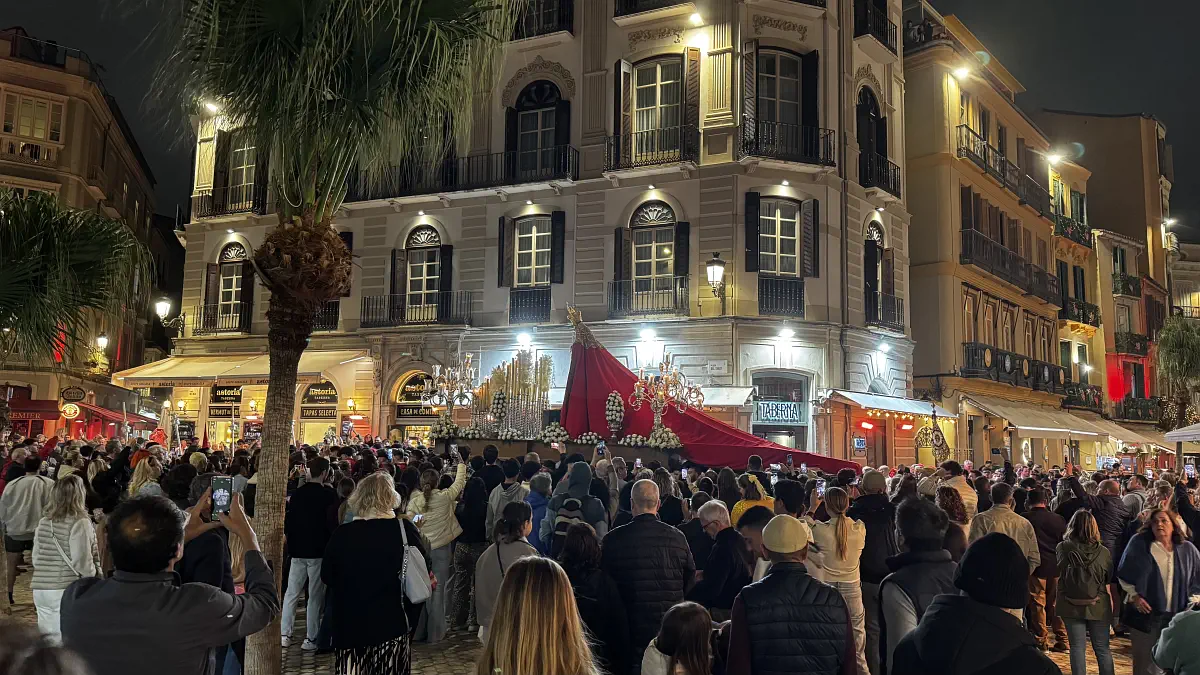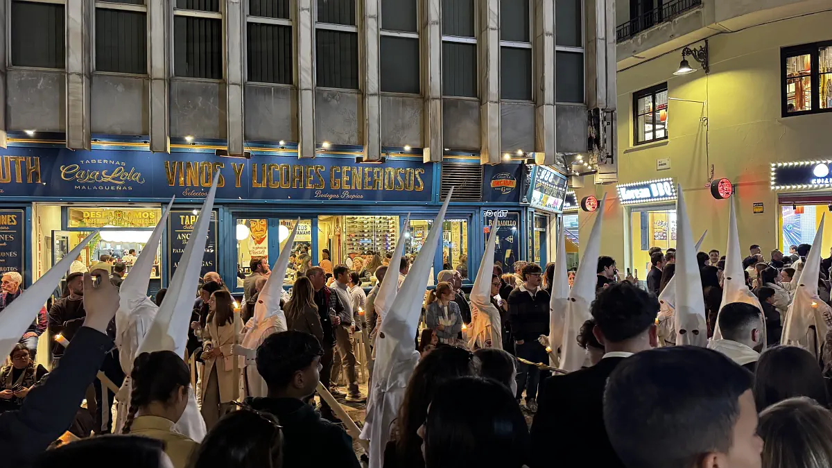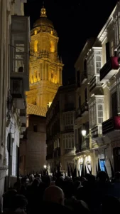 The processions usually start with the hooded penitents, who are said to take on the sins. There can be quite a lot of them. Then come the floats carried by men. In Málaga some of these are enormous and very heavy, so they are carried differently and by more people. After that you often see official-looking participants, and what stood out to me in Granada and Córdoba were the women dressed in black with a high comb and black veil. The procession usually ends with the marching band, which can be tiny, huge, or sometimes absent altogether depending on the brotherhood.