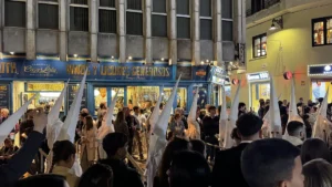 People take this very seriously, so it is good etiquette not to cross the procession or even walk in front of or behind it. Silence is also important while the hooded participants pass. Often people cheer when the float goes by and the music reaches its crescendo.
